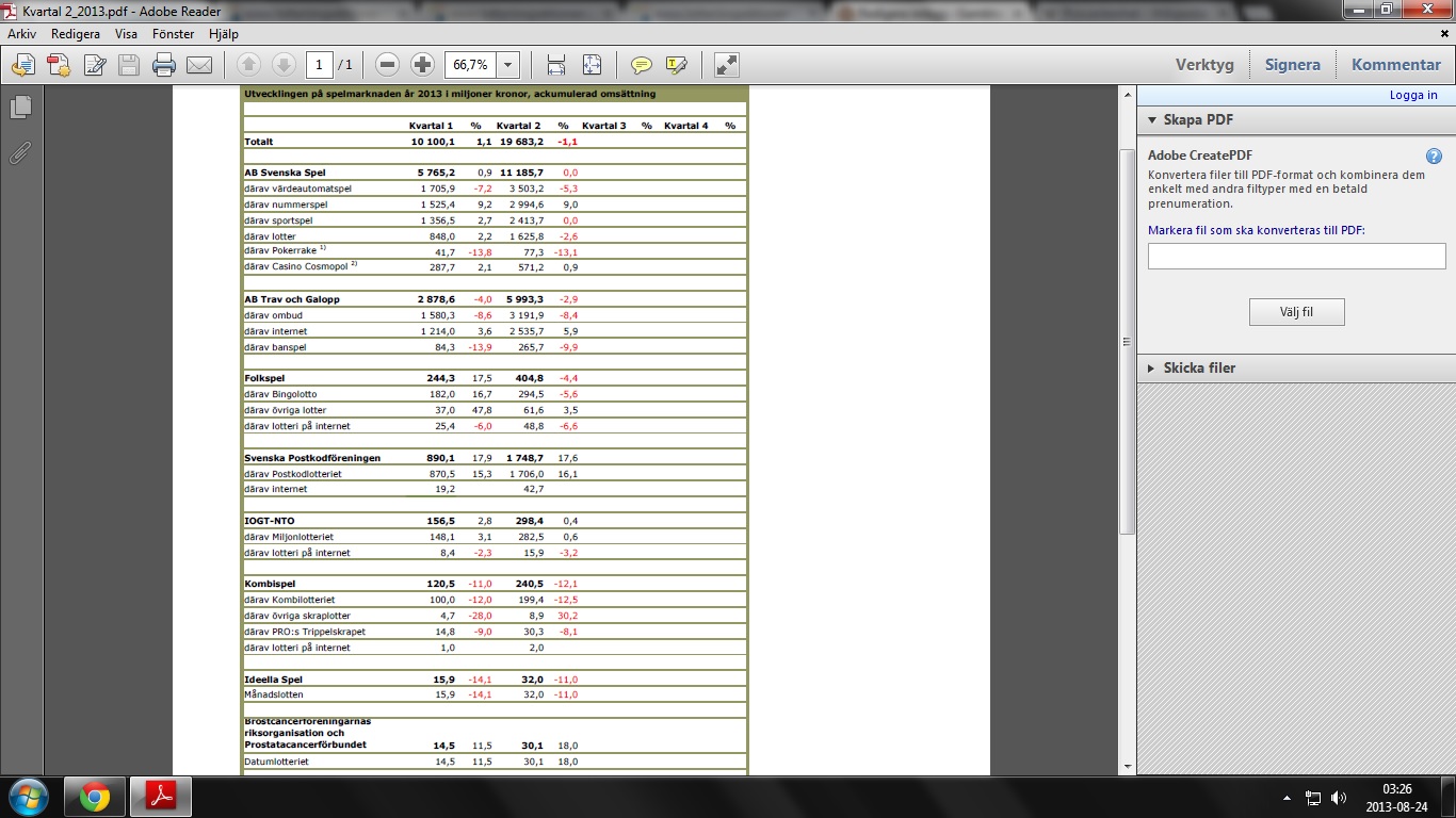 Nu har sent omsider andra kvartalsrapporten kommit. Den visar bland annat på att Svenska Spel som väntat gjort nollresultat, vackert så när Postkodslotteriet fortsätter att öka med 17% även andra kvartalet.